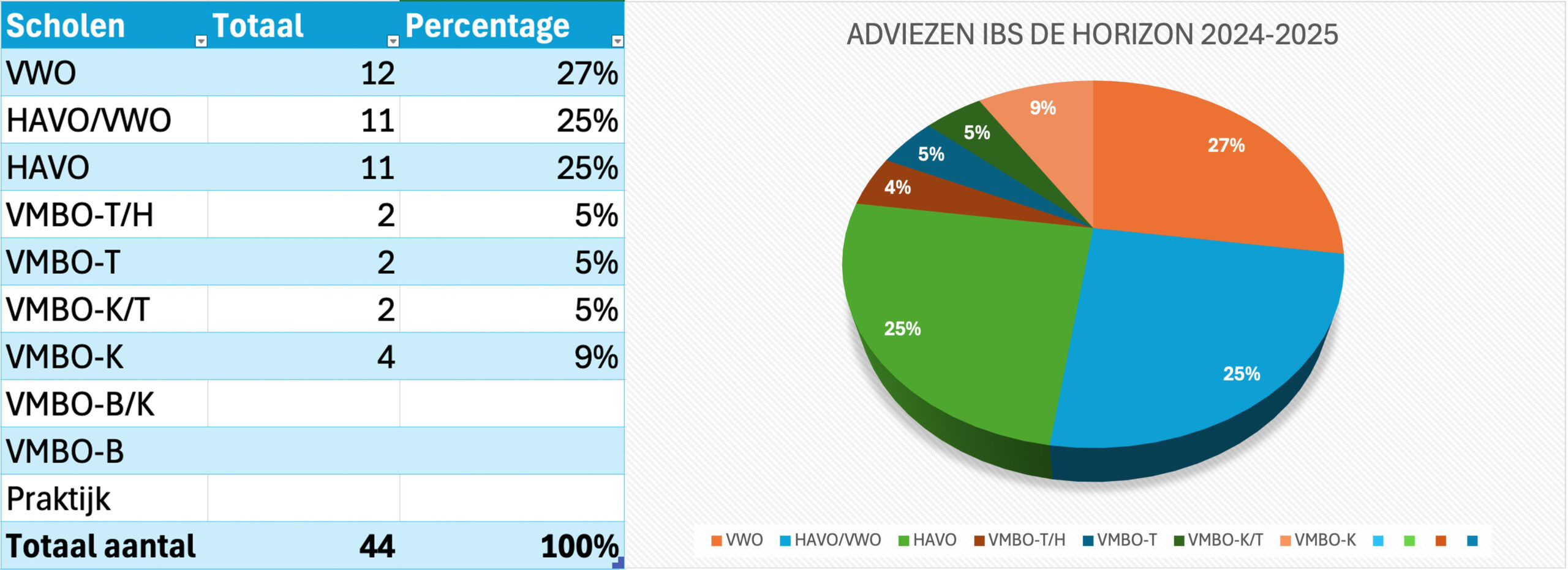 De uitstroompercentages van IBS de Horizon de laatste 5 jaar: